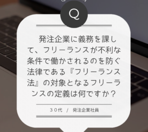 フリーランス法の対象となる『発注企業』とは、フリーランスに業務委託をする事業者であって、次の①、②のいずれかに該当するものをいいます。